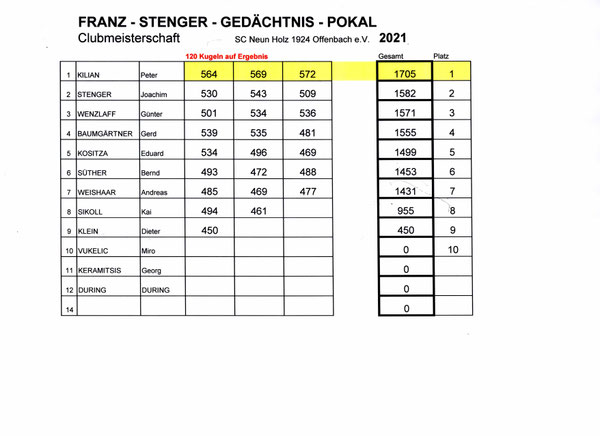 Gespielt wurde dieses Jahr erstmals im neuen Modus 4 mal 30 Kgl kombiniert, so wie in den Punktspielen, aber gewertet wurde nur das Gesamtergebnis. Klarer Sieger mit insgesamt 1.555 Holz wurde